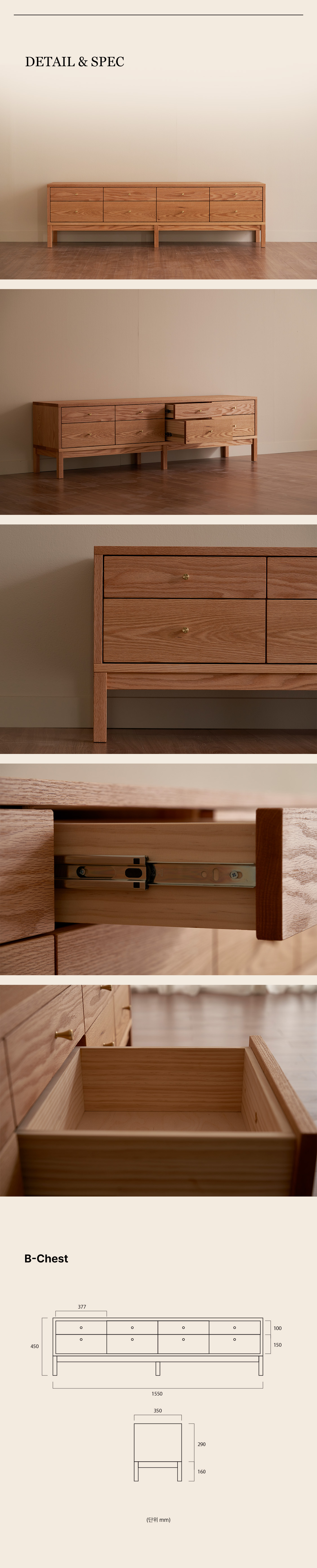 이러한 기능적 아이디어를 담아, B-chest는 단순한 서랍장을 넘어선 다용도 가구로 완성되었습니다.